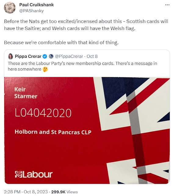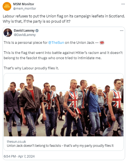 It appears that David Lammy and Labour’s Britishness is an Anglocentric Britishness, important in England but less so in Scotland and Wales. One might even say it is problematic in Scotland and Wales, which is why the Labour Party prefer not to use it in those nations. Whether or not the lack of appeal in Scotland and Wales is down to the Union Flag’s Anglocentricity, perhaps compounded by the actions of the Labour Party, is another matter.